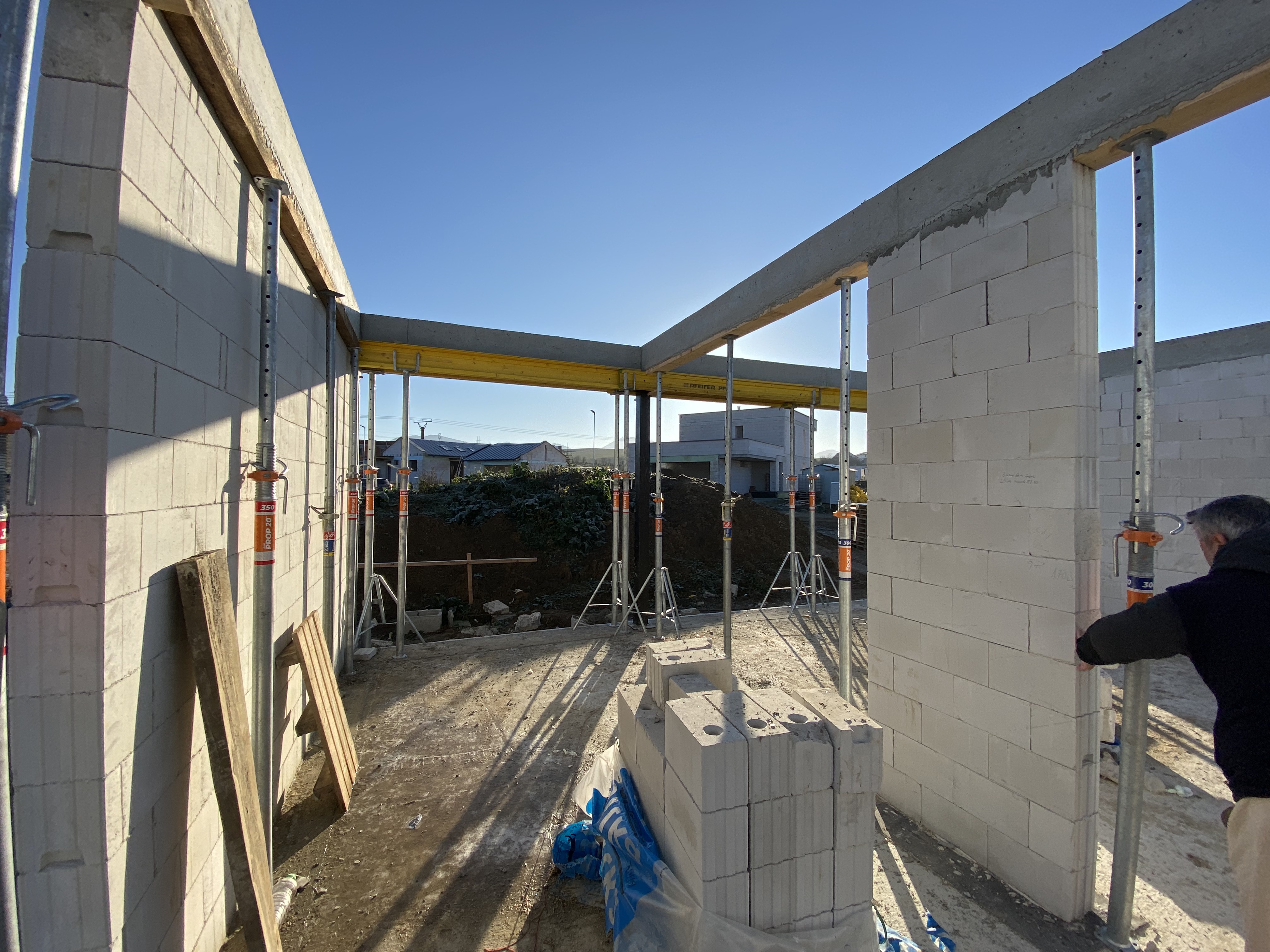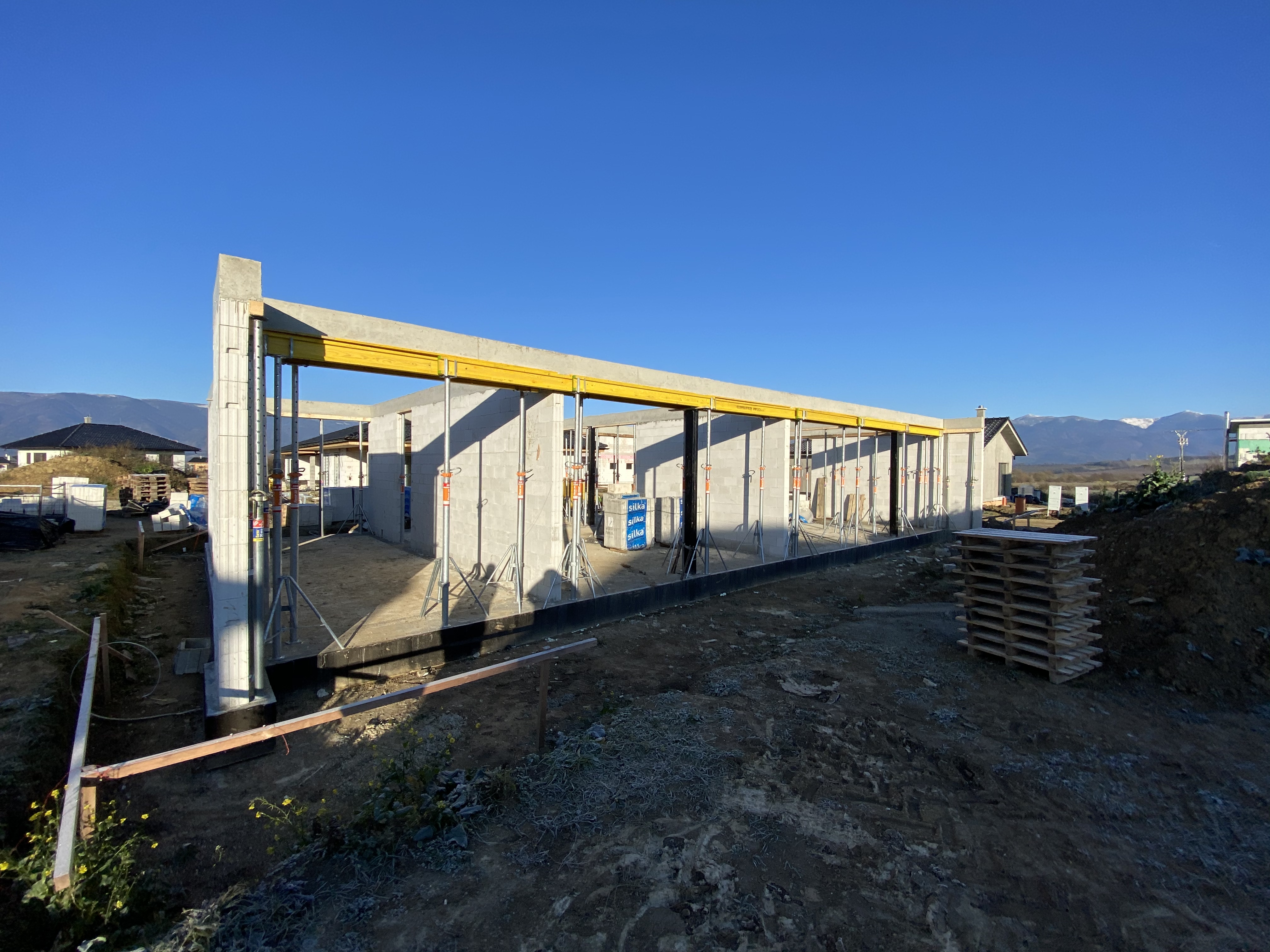 Práve pracujeme na individuálnom projekte rodinného domu pre mladú rodinu, ktorá bude už onedloho bývať v obci Diaková. Vybrali si moderný rodinný dom s rovnou strechou, ktorý spĺňa ich predstavy o vysnívanom bývaní. Veniec zašalovaný a my môžeme veselo pokračovať vo výstavbe, aby bol rodinný dom čo najsôr pod strechou.